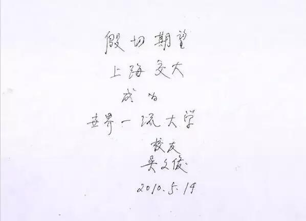 在谈到对上海交大的数学学科建设时,他阐述了自己的观点:“上海交大是个在工程技术方面很强的高校,而数学在与这些方面有紧密的联系,我们不要太追求纯而又纯的数学,应与某一个方面相联系,比如力学与数学就是平行发展的,我们要看到它们的联系之处,而不要把某一门学科孤立起来,对数学要加深理解。我希望母校能够继续保持朴实无华的学风。”当有人问他对交大的学生最想说的一句话是什么时,吴老回答说:“做一个对国家有用的人”。