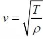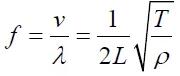而且,根据物理学公式,波在弦中传播速度与拉力 T 和线密度ρ有关,关系是: