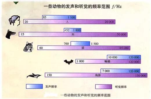 我们知道,声音的音调高低取决于声音的频率,所谓频率就是指每秒钟振动的次数。频率越高,音调就越高,频率越低,音调也越低。人的耳朵能够听到的频率范围是 20Hz 到 20000Hz,称之为可闻波。频率低于 20Hz 叫做次声波,次声波听不到,但是却会引起人内脏的共振,对人产生伤害,在地震、原子弹爆炸等情况下会产生次声波。频率高于 20000Hz 称为超声波,超声波可以用来透视人体内部、击碎人体内的结实等,医疗上有很大的用处。有些动物能够听到的频率范围比人大得多。