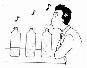 我们以笛子为例。在吹笛子时,空气柱振动,产生声音,声音的频率与空气柱的长短有关:空气柱越短,振动频率越高,音调也越高。比如我们在一个瓶子里装不同高度的水,用嘴吹瓶口,就会发现水越多、空气柱越短,频率越高。