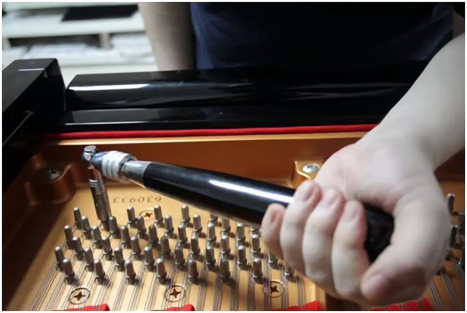 如果改变拉力,也可以影响发音频率,拉力越大,频率越高。国际标准音将中音 A 定为 440Hz,其他音按照十二平均律依次确定。调音师在调音时,就是改变弦上的张力,使各个弦的发音接近标准。